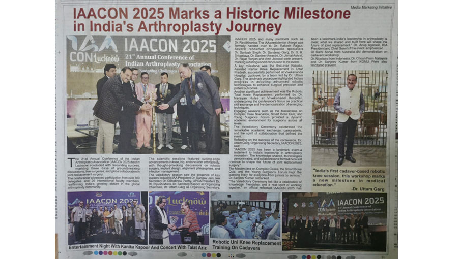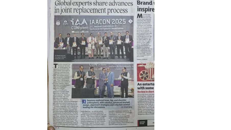 Media Global expert shares advances in joint replacement IAACON 2025 makes history in Arthroplasty Article on Hindustaan Newspaper Article on Today's Times of India Article on Knee Replacement Article on Osteoarthritis Press Release Healthcare and Wellness award by Dainik Jagran Indian Orthopaedics Association Conference Press Release Won prize at Cawnpore Arthroplasty Cawnpore Arthroplasty Annual Meet Badminton Tournament, Lucknow KGMU Event UPORTHOCON 2023 Event Cadaveric Workshop AOPAS 2023, Belagavi AOPAS, Karnataka Happy Mother's Day World Health Day, TOI Press Release Press Release Completed LIVE WEBINAR on Joint Replacement on let Press Release About Revision Total Hip Replacement Times Of India Times Of India Artical in Dainik Jagran Times Of India Times Of India